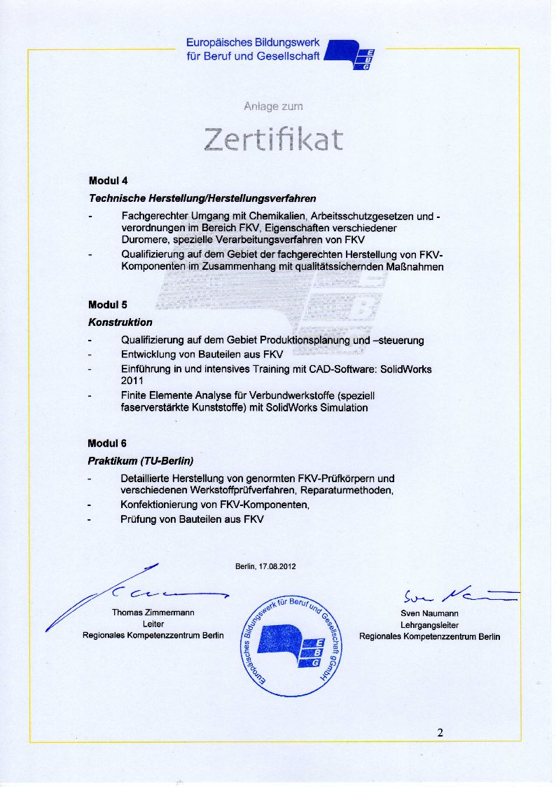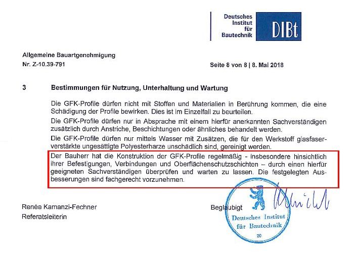 Ausschnitt aus der DIBt zur Kontrolle der GFK-Konstruktionen